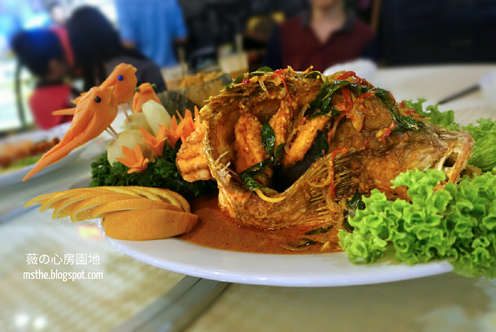 陆续送上来的奶香红狮鱼,具巧思的摆盘让人赏心悦目。体型丰硕的鱼身肥厚鲜美,被油炸得金黄酥香,配上特调的奶香咖哩酱料,让薇第一次吃就爱上了这种甜、鲜、辣、香相互交融的独特味道。我们边吃边满意地浅笑,嗯,幸福有时候就是这么简单 ......